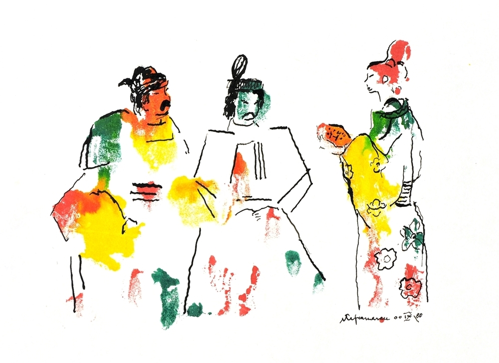 Nous vous proposons une reproduction artisanale sur toile du célèbre tableau 'Dialogue' de George Stefanescu-Ramnic , provenant du Musée de la Reproduction.