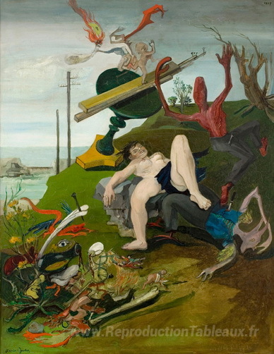 Nous vous proposons une reproduction artisanale sur toile du célèbre tableau 'Les malheurs d'amour' de Francis Gruber, provenant du Musée de la Reproduction.