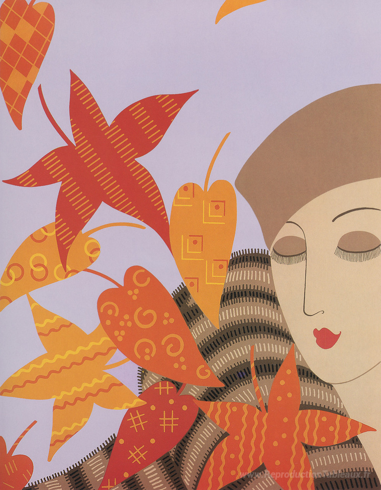 Nous vous proposons une reproduction artisanale sur toile du célèbre tableau 'Les saisons, automne' de Erte, provenant du Musée de la Reproduction.