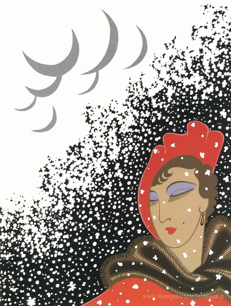 Nous vous proposons une reproduction artisanale sur toile du célèbre tableau 'Les saisons, l'hiver' de Erte, provenant du Musée de la Reproduction.