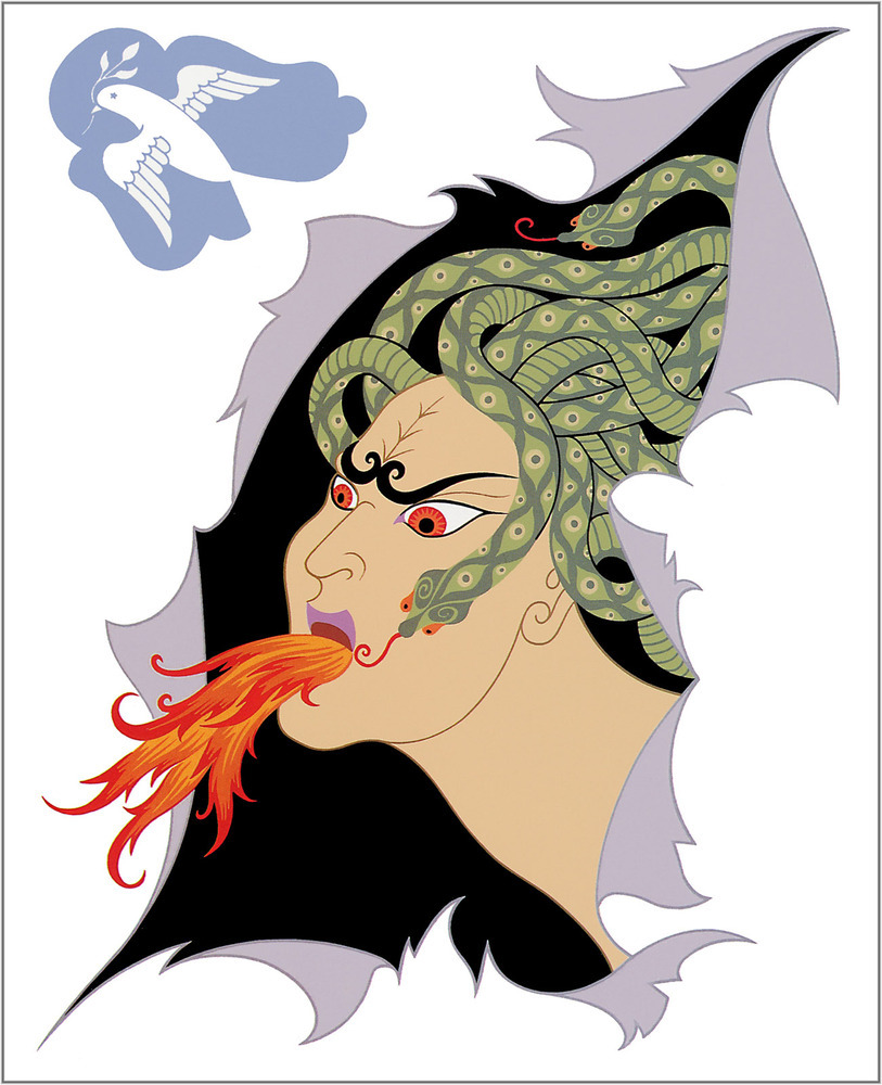 Nous vous proposons une reproduction artisanale sur toile du célèbre tableau 'Les sept péchés mortels, colère' de Erte, provenant du Musée de la Reproduction.