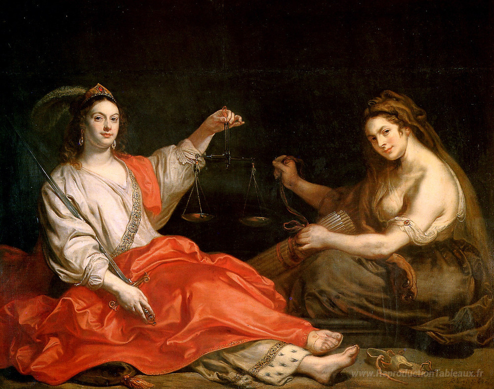 Nous vous proposons une reproduction artisanale sur toile du célèbre tableau 'L'unité et la justice' de Theodoor van Thulden, provenant du Musée de la Reproduction.
