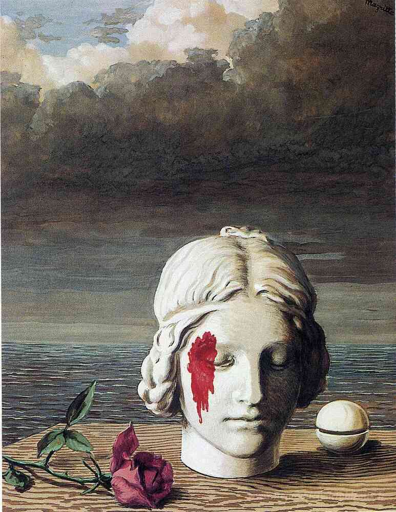 Nous vous proposons une reproduction artisanale sur toile du célèbre tableau 'Mémoire' de Rene Magritte, provenant du Musée de la Reproduction.