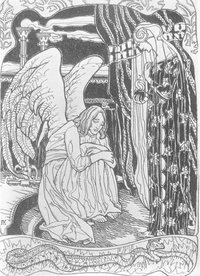 Nous vous proposons une reproduction artisanale sur toile du célèbre tableau 'Mémoire' de Aladar Korosfoi-Kriesch, provenant du Musée de la Reproduction.