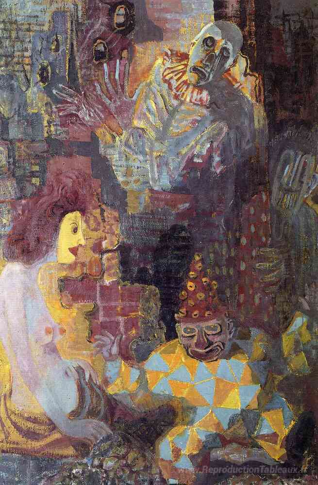 Nous vous proposons une reproduction artisanale sur toile du célèbre tableau 'Masques comme des ruines' de Otto Dix, provenant du Musée de la Reproduction.