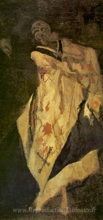 Nous vous proposons une reproduction artisanale sur toile du célèbre tableau 'Mort au ballon' de Felicien Rops, provenant du Musée de la Reproduction.