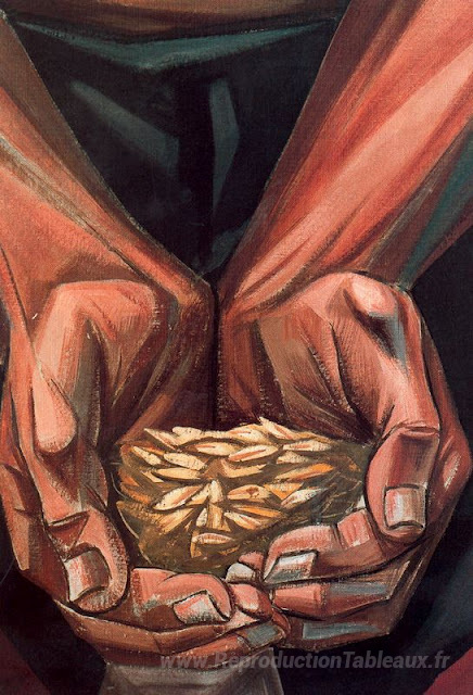 Nous vous proposons une reproduction artisanale sur toile du célèbre tableau 'Mural des droits de l'homme. Les graines qui donnent le fruit (d' de Vela Zanetti, provenant du Musée de la Reproduction.