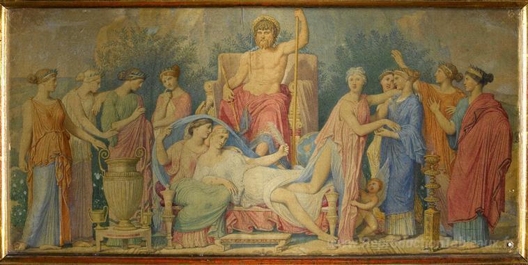 Nous vous proposons une reproduction artisanale sur toile du célèbre tableau 'Naissance des muses' de Jean Auguste Dominique Ingres, provenant du Musée de la Reproduction.