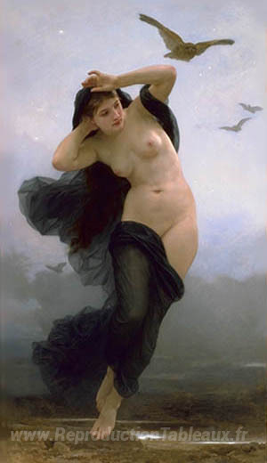 Nous vous proposons une reproduction artisanale sur toile du célèbre tableau 'Nuit' de William-Adolphe Bouguereau, provenant du Musée de la Reproduction.