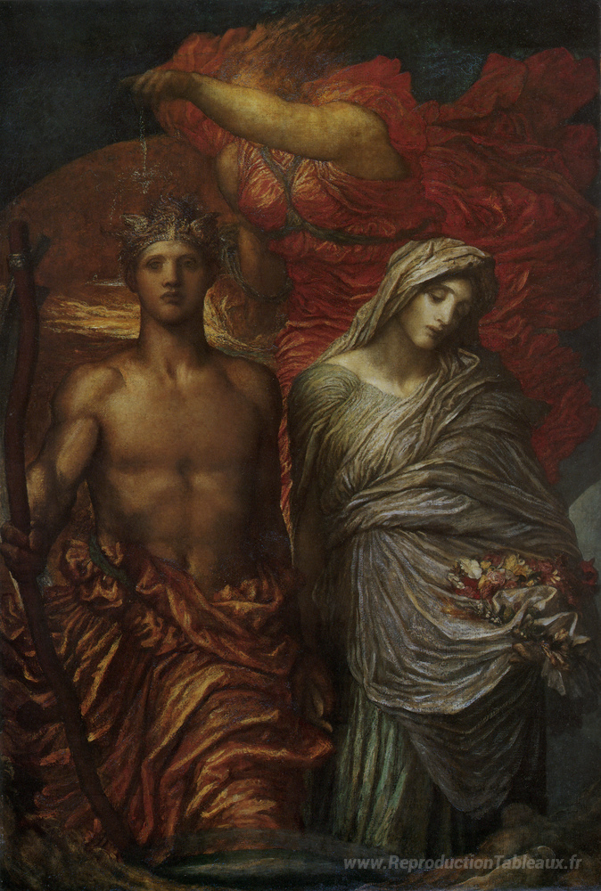 Nous vous proposons une reproduction artisanale sur toile du célèbre tableau 'Temps, mort et jugement' de George Frederick Watts, provenant du Musée de la Reproduction.