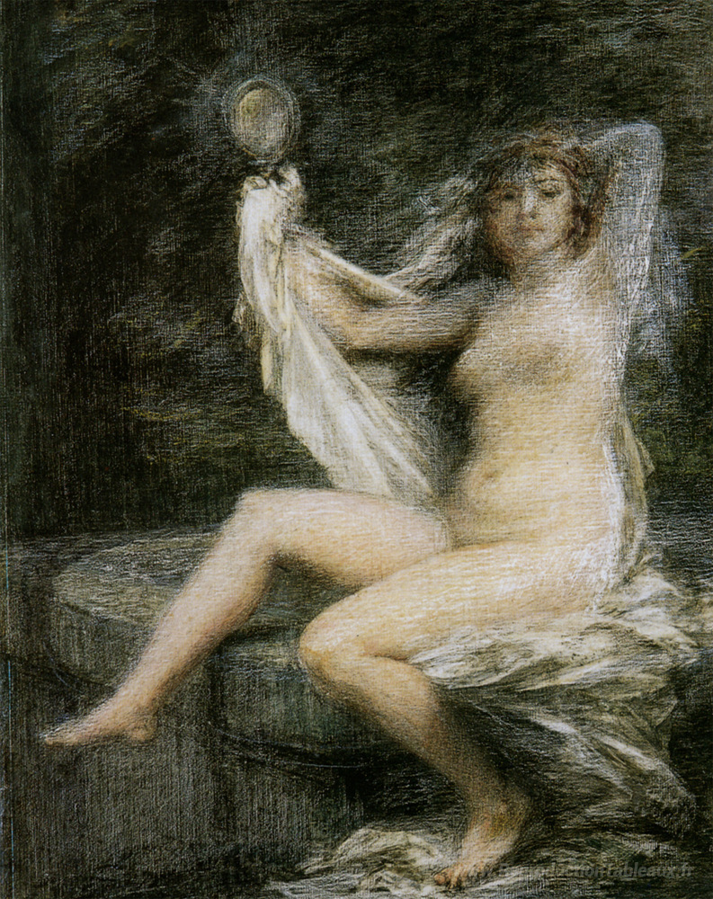 Nous vous proposons une reproduction artisanale sur toile du célèbre tableau 'Vérité' de Henri Fantin-Latour, provenant du Musée de la Reproduction.