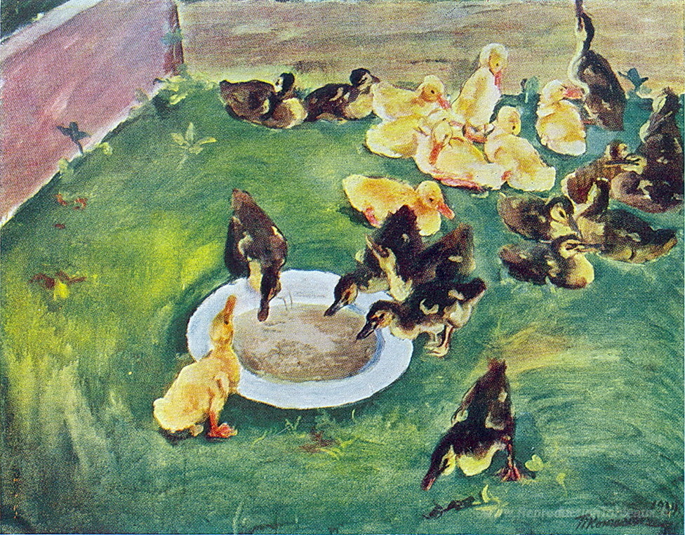 Nous vous proposons une reproduction artisanale sur toile du célèbre tableau 'Canetons' de Pyotr Konchalovsky, provenant du Musée de la Reproduction.