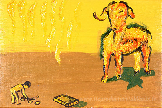 Nous vous proposons une reproduction artisanale sur toile du célèbre tableau 'Carne e vestito' de Enzo Cucchi, provenant du Musée de la Reproduction.