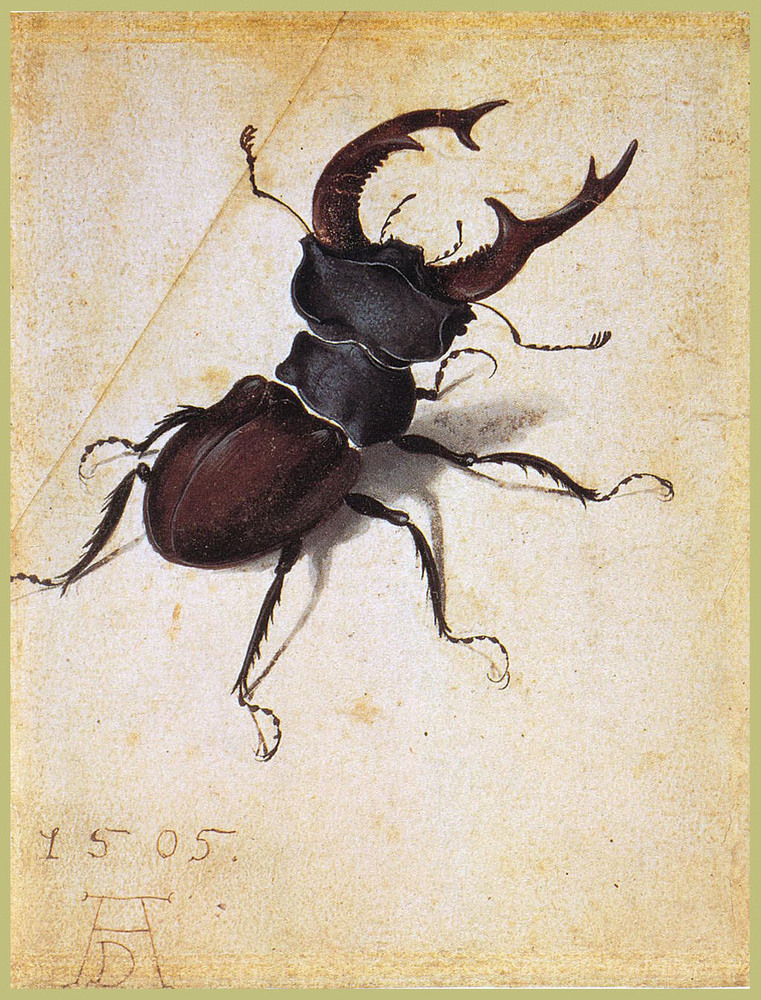 Nous vous proposons une reproduction artisanale sur toile du célèbre tableau 'Cervus Lucanus' de Albrecht Durer, provenant du Musée de la Reproduction.