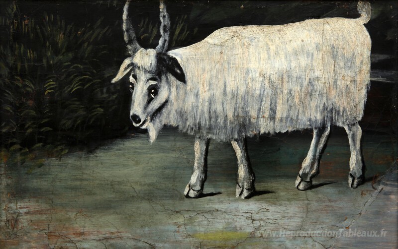 Nous vous proposons une reproduction artisanale sur toile du célèbre tableau 'Chèvre' de Niko Pirosmani, provenant du Musée de la Reproduction.