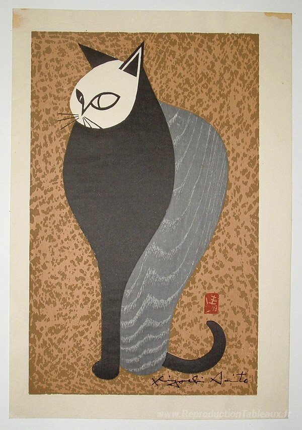 Nous vous proposons une reproduction artisanale sur toile du célèbre tableau 'Chat' de Kiyoshi Saito, provenant du Musée de la Reproduction.