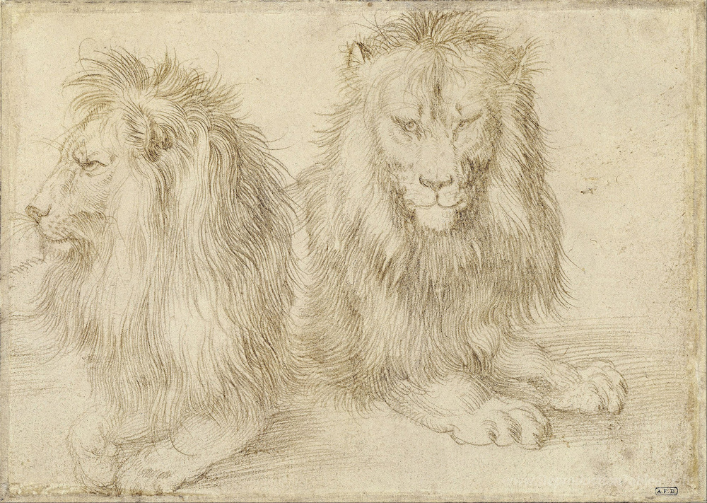 Nous vous proposons une reproduction artisanale sur toile du célèbre tableau 'Deux lions assis' de Albrecht Durer, provenant du Musée de la Reproduction.