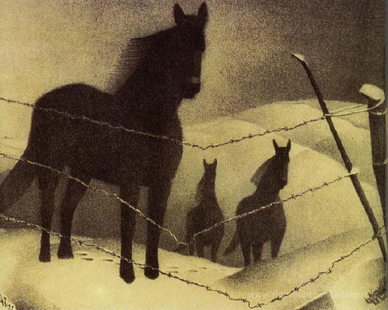 Nous vous proposons une reproduction artisanale sur toile du célèbre tableau 'Février' de Grant Wood, provenant du Musée de la Reproduction.