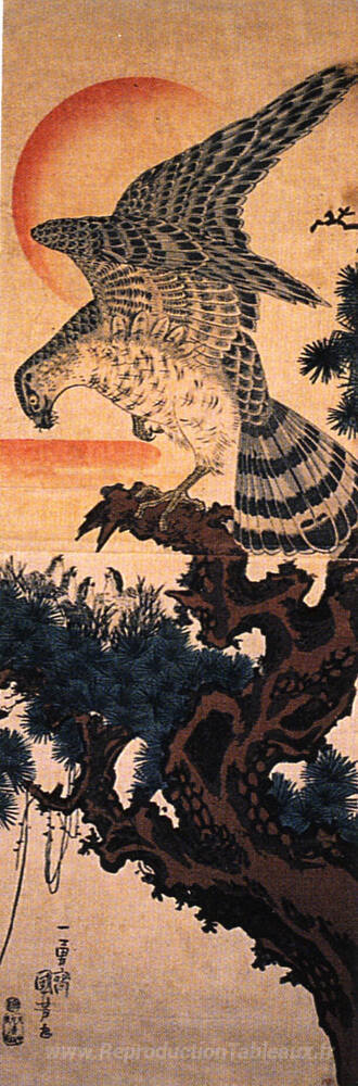 Nous vous proposons une reproduction artisanale sur toile du célèbre tableau 'Faucon' de Utagawa Kuniyoshi, provenant du Musée de la Reproduction.
