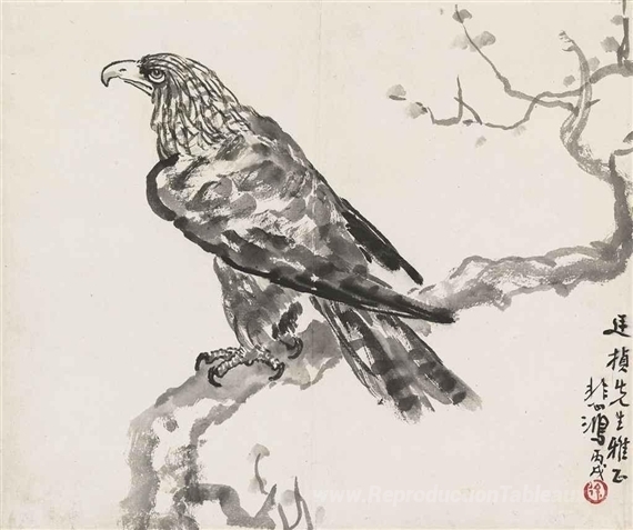 Nous vous proposons une reproduction artisanale sur toile du célèbre tableau 'Faucon' de Xu Beihong, provenant du Musée de la Reproduction.
