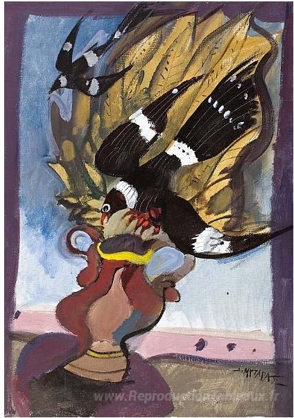 Nous vous proposons une reproduction artisanale sur toile du célèbre tableau 'Hirondelles' de Dimitris Mytaras, provenant du Musée de la Reproduction.