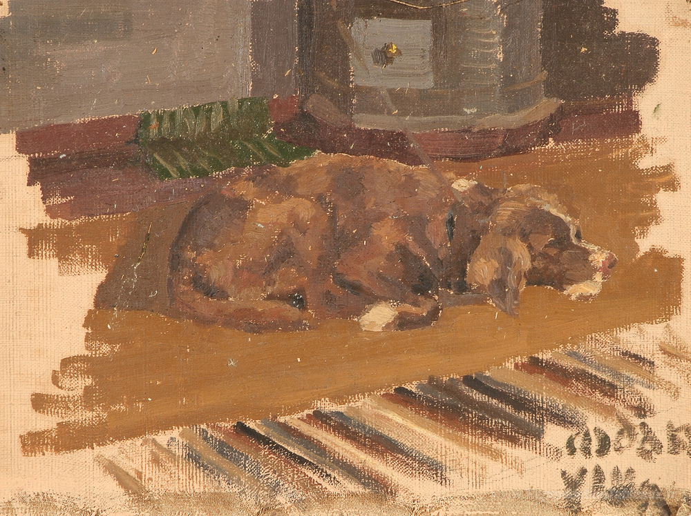 Nous vous proposons une reproduction artisanale sur toile du célèbre tableau 'Le chien est parti' de Nicholas Roerich, provenant du Musée de la Reproduction.