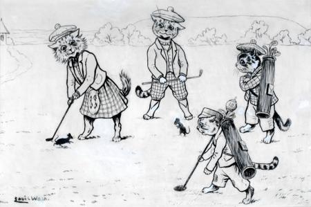 Nous vous proposons une reproduction artisanale sur toile du célèbre tableau 'LE VERT' de Louis Wain, provenant du Musée de la Reproduction.