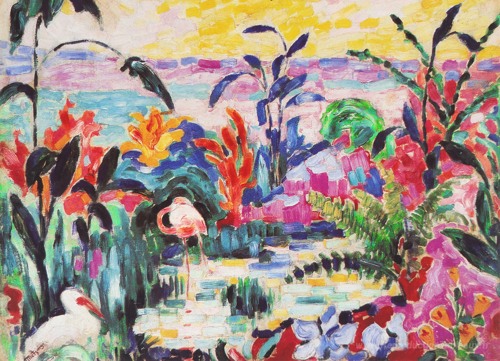 Nous vous proposons une reproduction artisanale sur toile du célèbre tableau 'Les Ibis' de Jean Metzinger, provenant du Musée de la Reproduction.