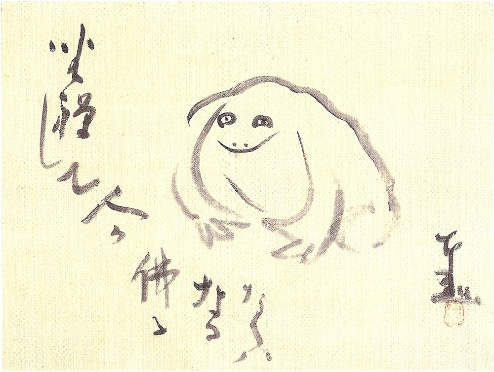 Nous vous proposons une reproduction artisanale sur toile du célèbre tableau 'Méditer la grenouille' de Sengai, provenant du Musée de la Reproduction.
