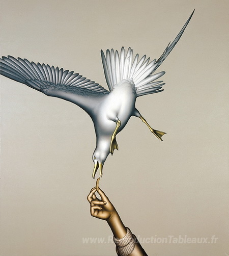 Nous vous proposons une reproduction artisanale sur toile du célèbre tableau 'M?wenfütterung' de Dieter Asmus, provenant du Musée de la Reproduction.