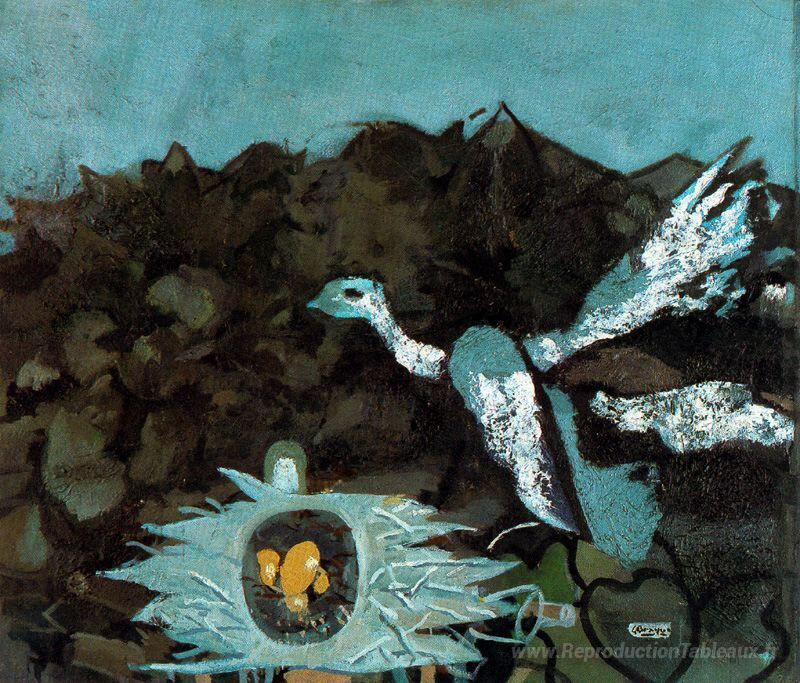 Nous vous proposons une reproduction artisanale sur toile du célèbre tableau 'Oiseau et c'est nid' de Georges Braque, provenant du Musée de la Reproduction.