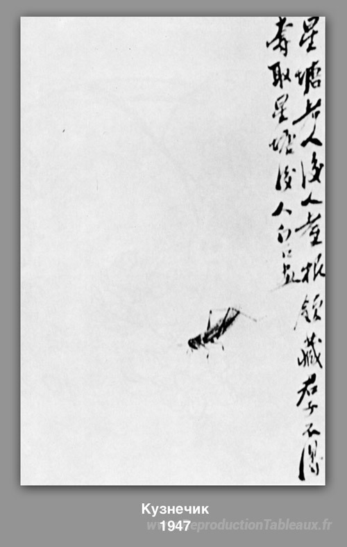 Nous vous proposons une reproduction artisanale sur toile du célèbre tableau 'Sauterelle' de Qi Baishi, provenant du Musée de la Reproduction.