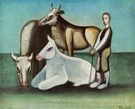 Nous vous proposons une reproduction artisanale sur toile du célèbre tableau 'Taureaux' de Bertalan Por, provenant du Musée de la Reproduction.
