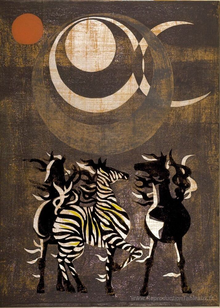 Nous vous proposons une reproduction artisanale sur toile du célèbre tableau 'Vent-vent / vent de lune' de Tadashi Nakayama, provenant du Musée de la Reproduction.