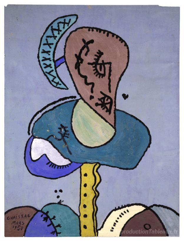Nous vous proposons une reproduction artisanale sur toile du célèbre tableau 'Sans titre' de Gaston Chaissac, provenant du Musée de la Reproduction.
