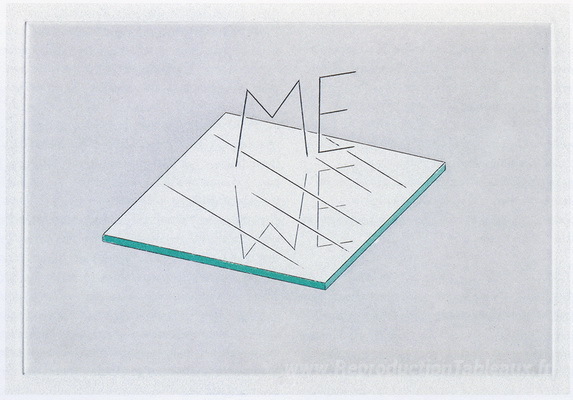 Nous vous proposons une reproduction artisanale sur toile du célèbre tableau 'MOI NOUS' de Markus Raetz, provenant du Musée de la Reproduction.