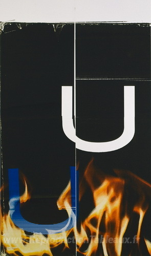 Nous vous proposons une reproduction artisanale sur toile du célèbre tableau 'Sans titre' de Wade Guyton, provenant du Musée de la Reproduction.