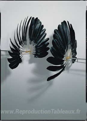 Nous vous proposons une reproduction artisanale sur toile du célèbre tableau 'Le jumeau du corbeau' de Rebecca Horn, provenant du Musée de la Reproduction.