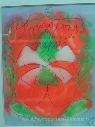 Nous vous proposons une reproduction artisanale sur toile du célèbre tableau 'Bourgeons de papier' de Jean Messagier, provenant du Musée de la Reproduction.