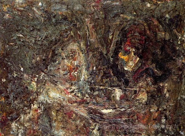 Nous vous proposons une reproduction artisanale sur toile du célèbre tableau 'Deux têtes' de Eugene Leroy, provenant du Musée de la Reproduction.