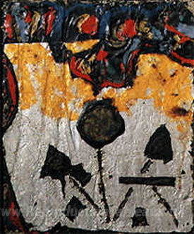Nous vous proposons une reproduction artisanale sur toile du célèbre tableau 'Fleurs nocturnes' de Giuseppe Pinot-Gallizio, provenant du Musée de la Reproduction.