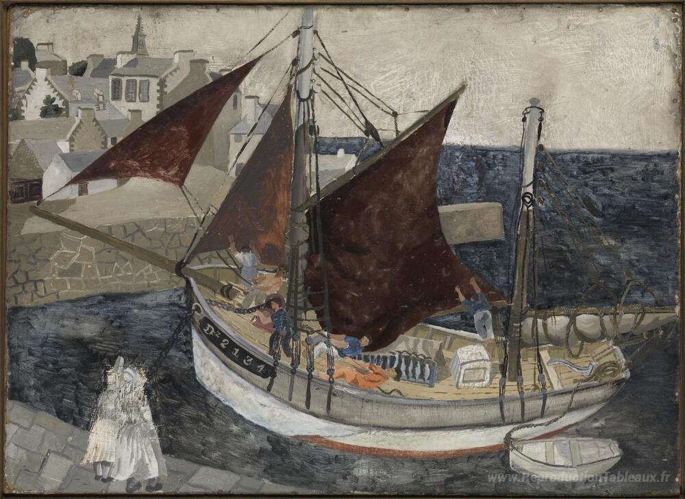 Nous vous proposons une reproduction artisanale sur toile du célèbre tableau 'Boat in Harbor, Brittany' de Christopher Wood, provenant du Musée de la Reproduction.