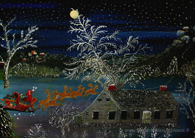 Nous vous proposons une reproduction artisanale sur toile du célèbre tableau 'Tant longtemps jusqu'à l'année prochaine' de Grandma Moses, provenant du Musée de la Reproduction.