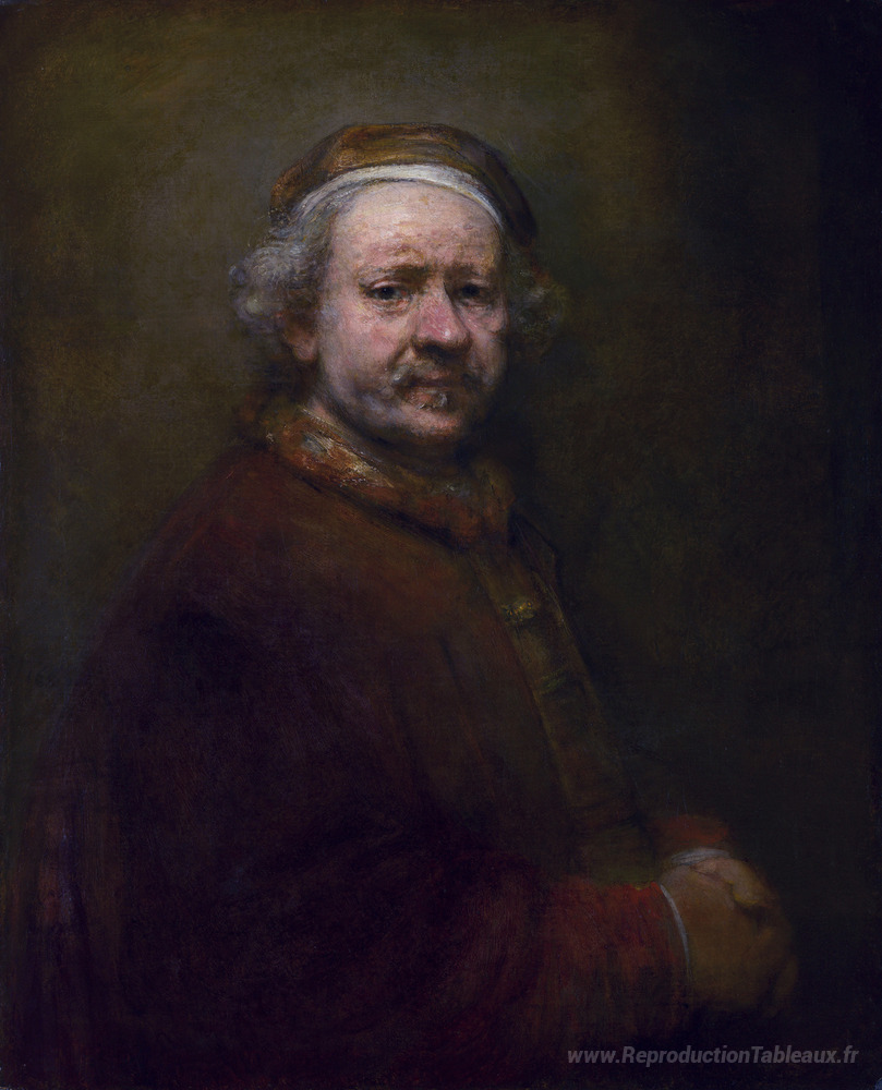 Nous vous proposons une reproduction artisanale sur toile du célèbre tableau 'Autoportrait à l'âge de 63 ans' de Rembrandt, provenant du Musée de la Reproduction.