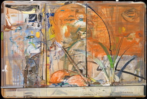 Nous vous proposons une reproduction artisanale sur toile du célèbre tableau 'Autoportrait à une table' de Dieter Roth, provenant du Musée de la Reproduction.