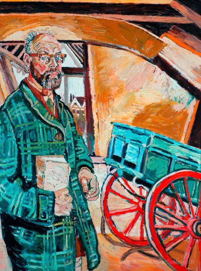 Nous vous proposons une reproduction artisanale sur toile du célèbre tableau 'Autoportrait avec chariot' de John Bratby, provenant du Musée de la Reproduction.