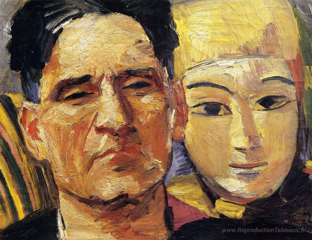 Nous vous proposons une reproduction artisanale sur toile du célèbre tableau 'Autoportrait avec masque' de Martiros Saryan, provenant du Musée de la Reproduction.