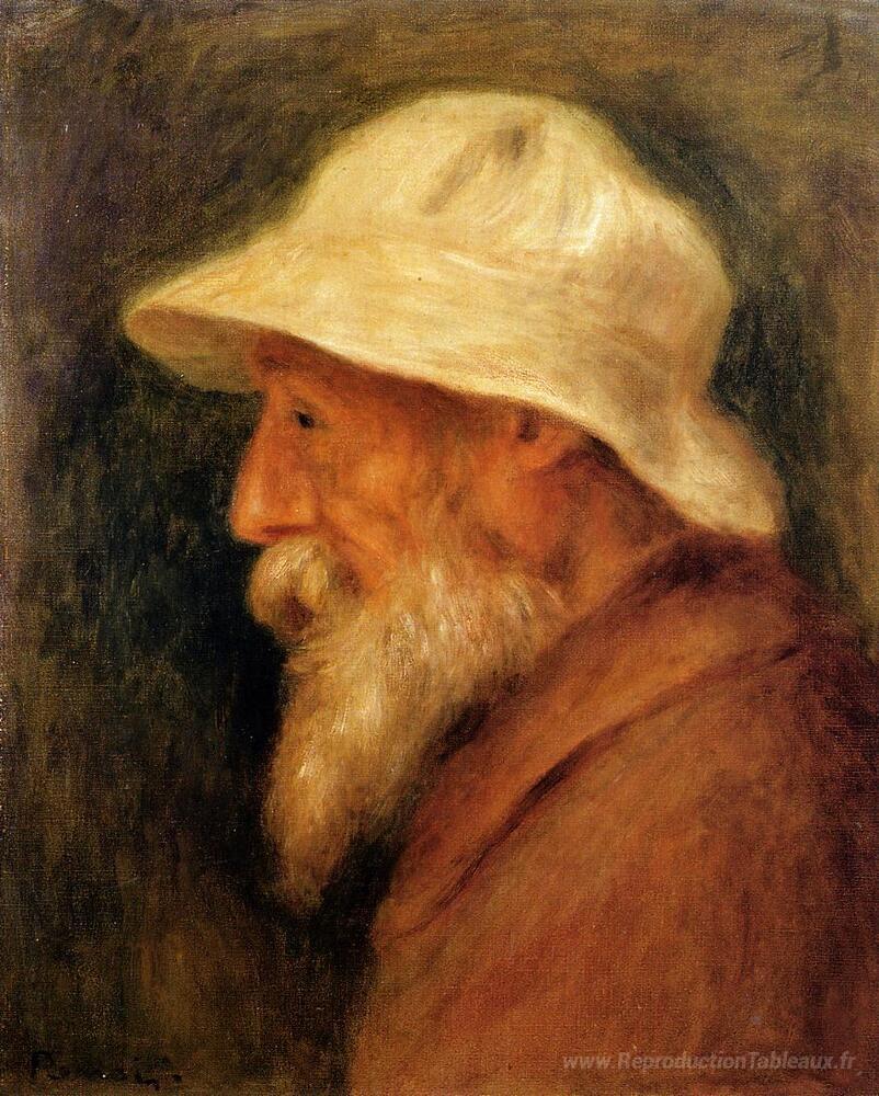 Nous vous proposons une reproduction artisanale sur toile du célèbre tableau 'Autoportrait avec un chapeau blanc' de Pierre-Auguste Renoir, provenant du Musée de la Reproduction.