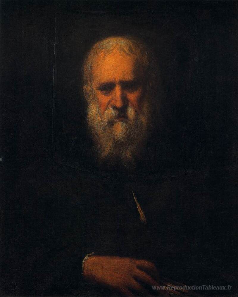 Nous vous proposons une reproduction artisanale sur toile du célèbre tableau 'Autoportrait avec un livre' de Tintoretto, provenant du Musée de la Reproduction.