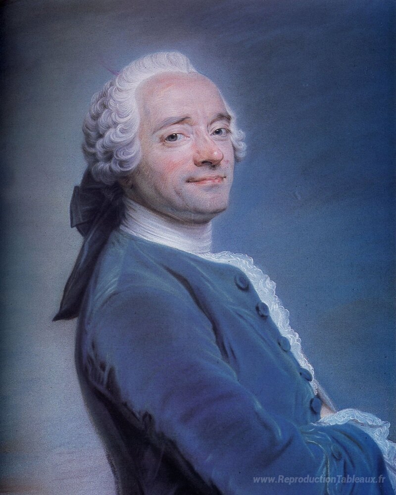 Nous vous proposons une reproduction artisanale sur toile du célèbre tableau 'Autoportrait avec volant' de Maurice Quentin de La Tour, provenant du Musée de la Reproduction.